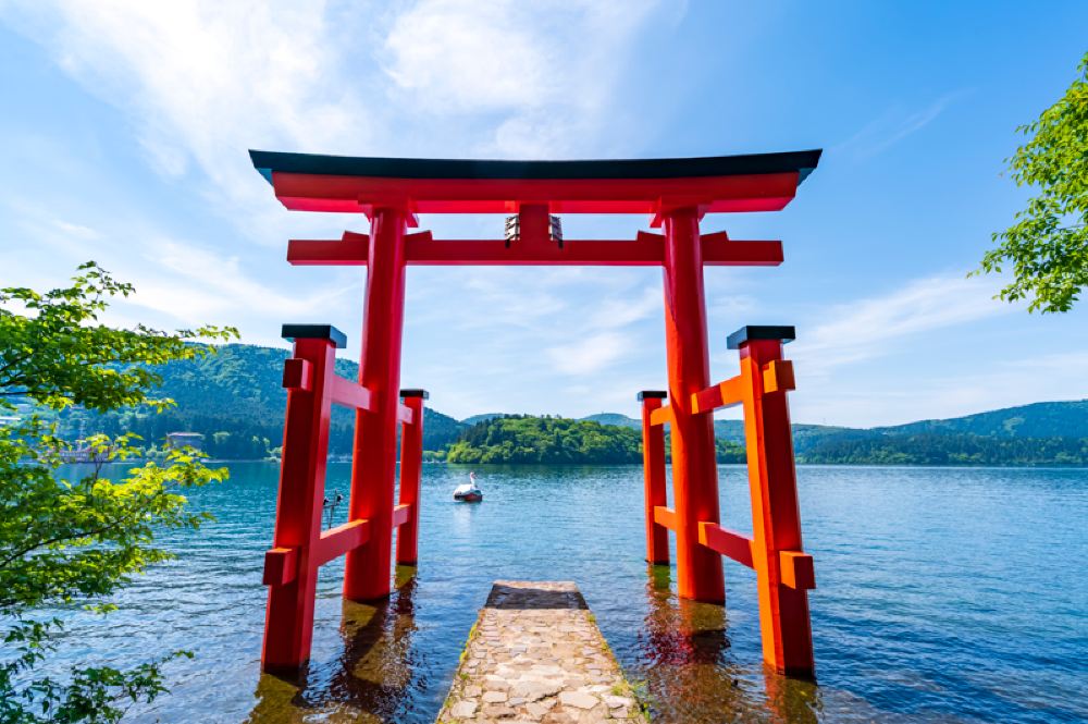 ▲ 平和之鳥居,位於日本神奈川縣蘆之湖畔,是箱根神社的標誌性建築,以其紅色鳥居佇立湖邊、水天一色的景象而聞名,被譽為「通往神域的門」。