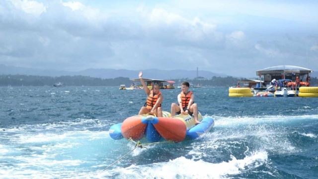為您的長灘島之旅增添刺激樂趣,體驗驚險刺激的香蕉船,這是菲律賓頂級海灘目的地中最有趣的活動之一!無論您是與家人或朋友同行,這趟充滿腎上腺素的旅程都非常適合一起創造難忘的回憶。在這 15 分鐘的冒險中,您將以高達 30 公里/小時的速度在長灘島水域上被拖曳,請抓緊扶手。無需擔心,現場備有救生衣和受過訓練的安全人員,確保您從頭到尾都能安全愉快地享受旅程。