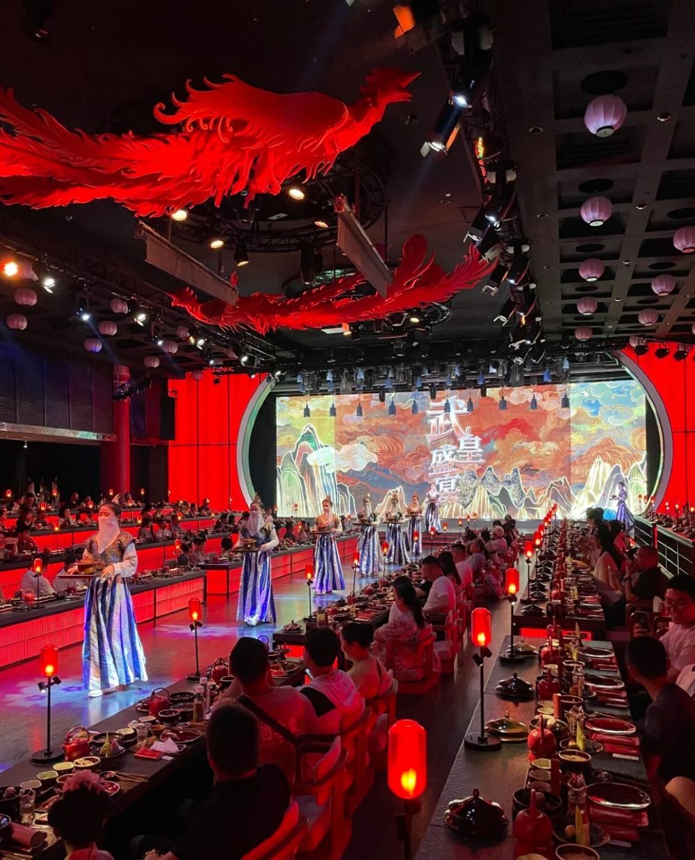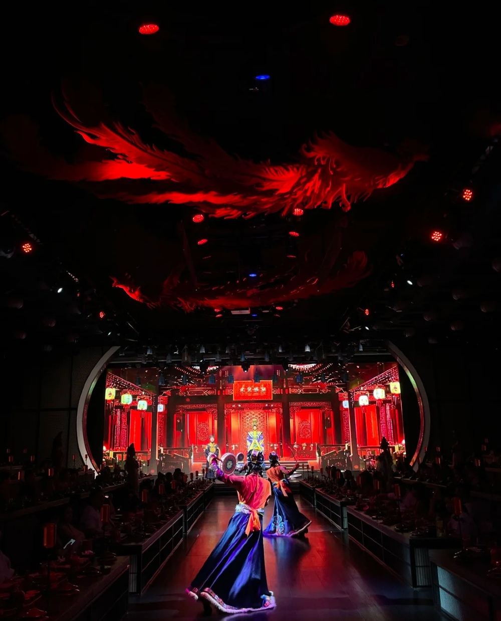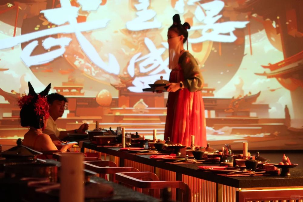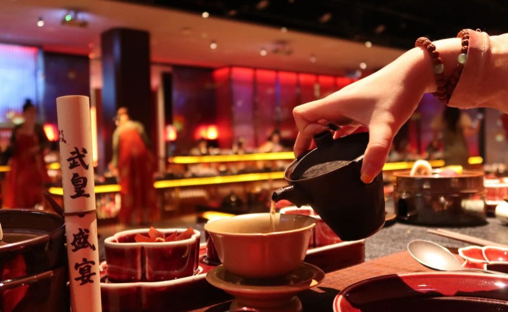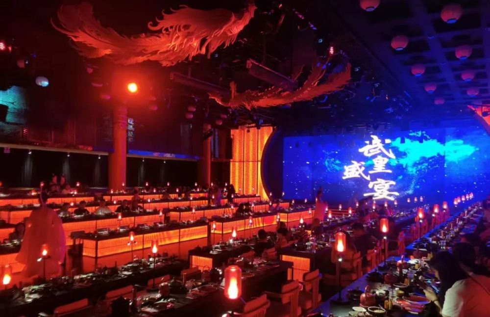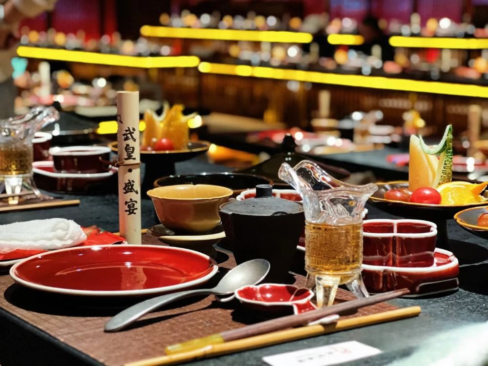 從空間佈局到舞美設計,再到用餐禮儀與菜品呈現,無一不透露著武皇盛宴的獨具匠心。餐廳採用古代皇帝宴請群臣的宮廷格局,讓食客在享受美食的同時,也能近距離觀賞到精彩的演出。