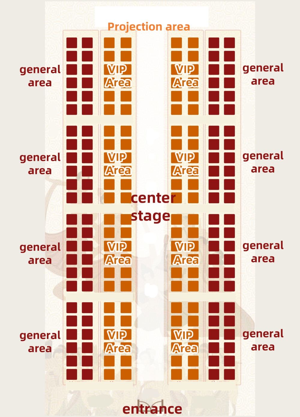 組合分為VIP貴賓區和普通區,如下圖所示