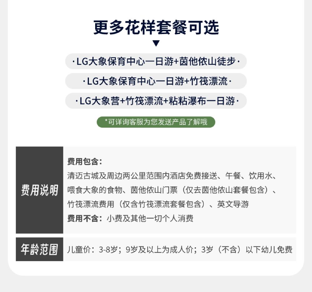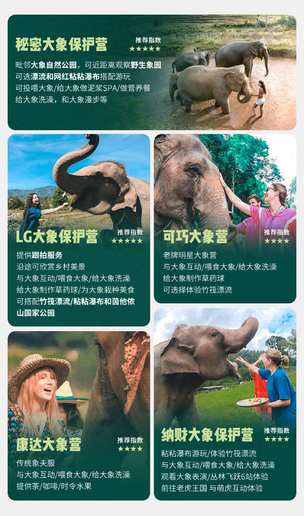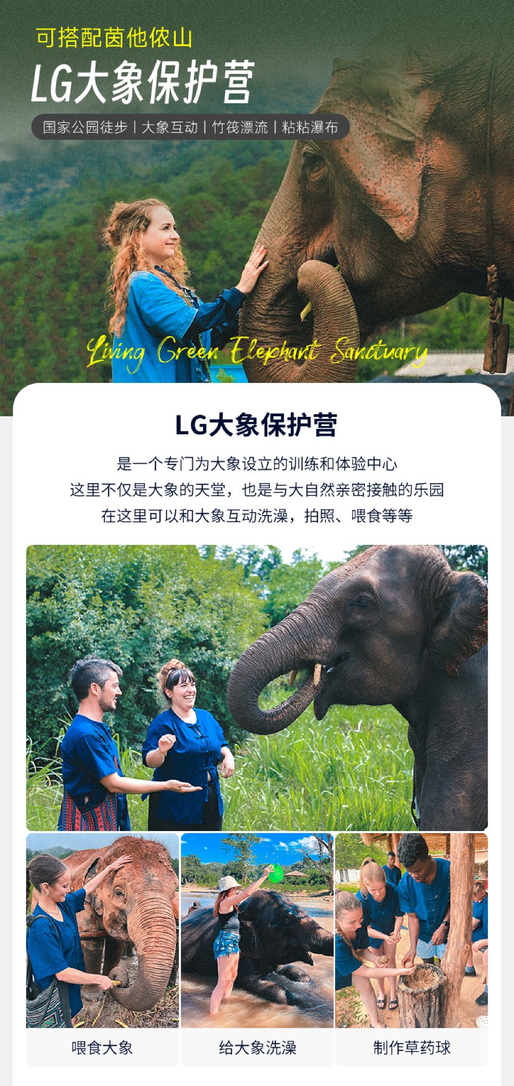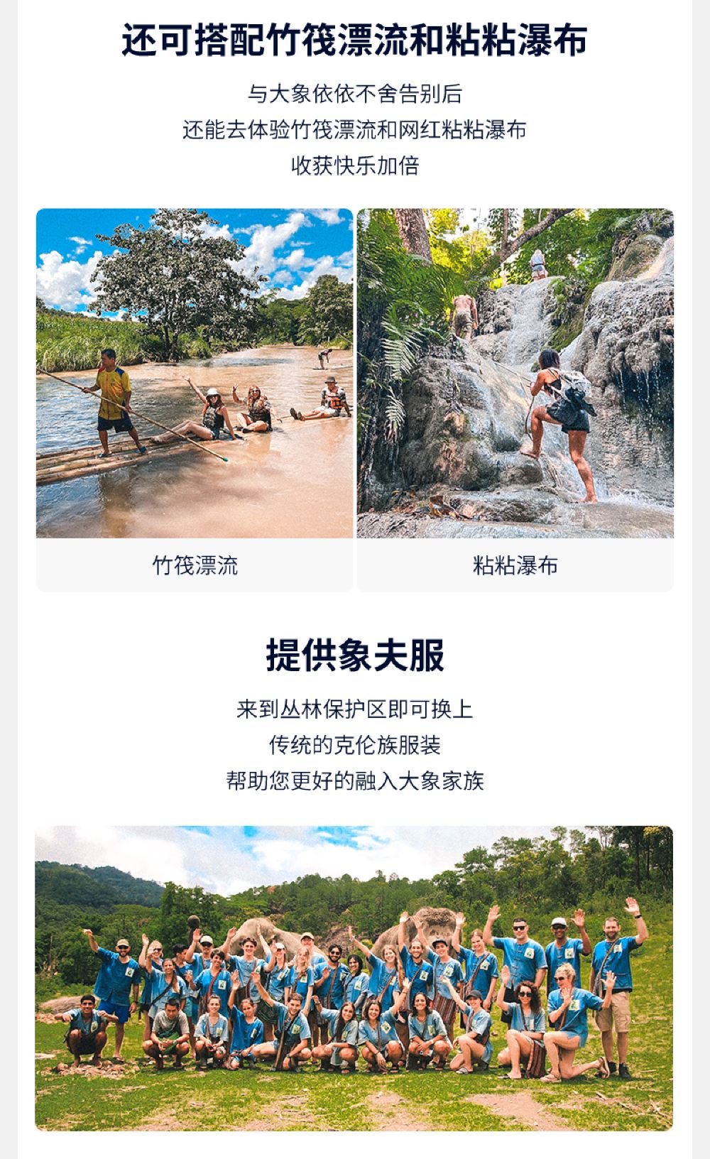 清邁LG大象營+網紅粘粘瀑布+竹筏漂流一日遊