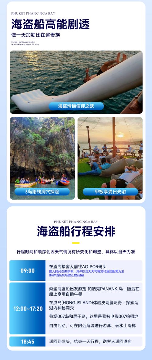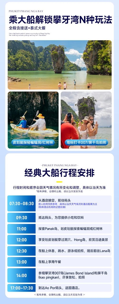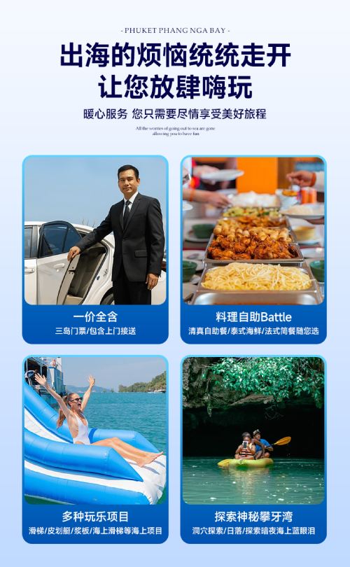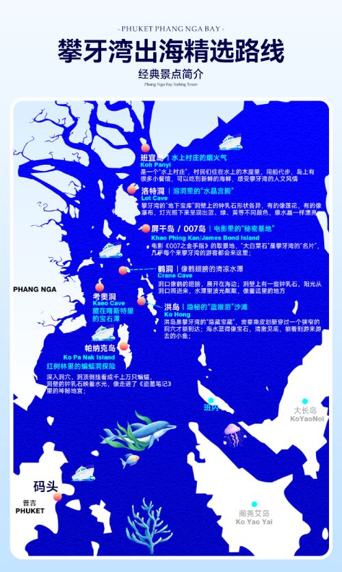 漫遊泛舟,跳島遊玩,探尋巧奪天工的怪石山洞,一起探索007島嶼,在海上狂歡!