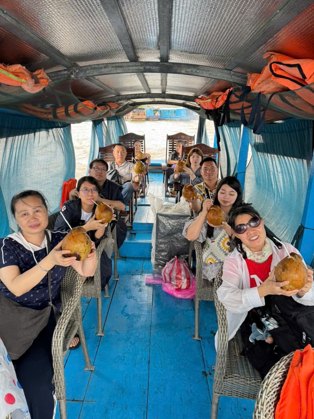 展開返回胡志明市的旅程。出發前享用一杯清爽的椰子飲品。