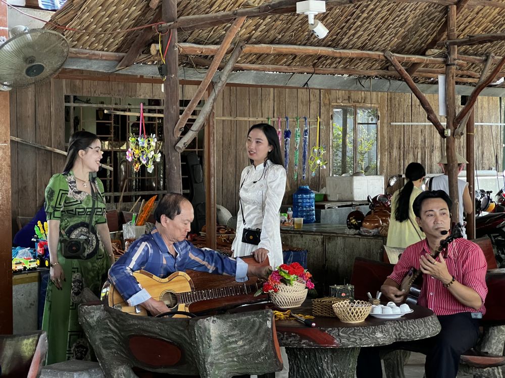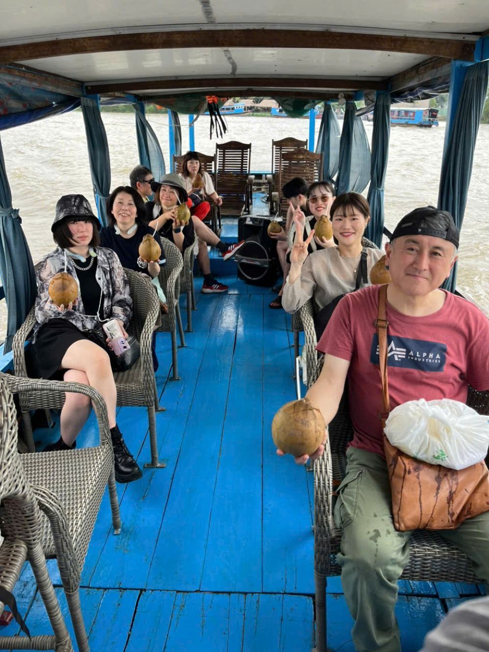 抵達美壽後,搭乘傳統小船沿著前江航行。沿途欣賞河岸風光與鬱鬱蔥蔥的棕櫚樹,前往麒麟島(又稱獨角獸島)。