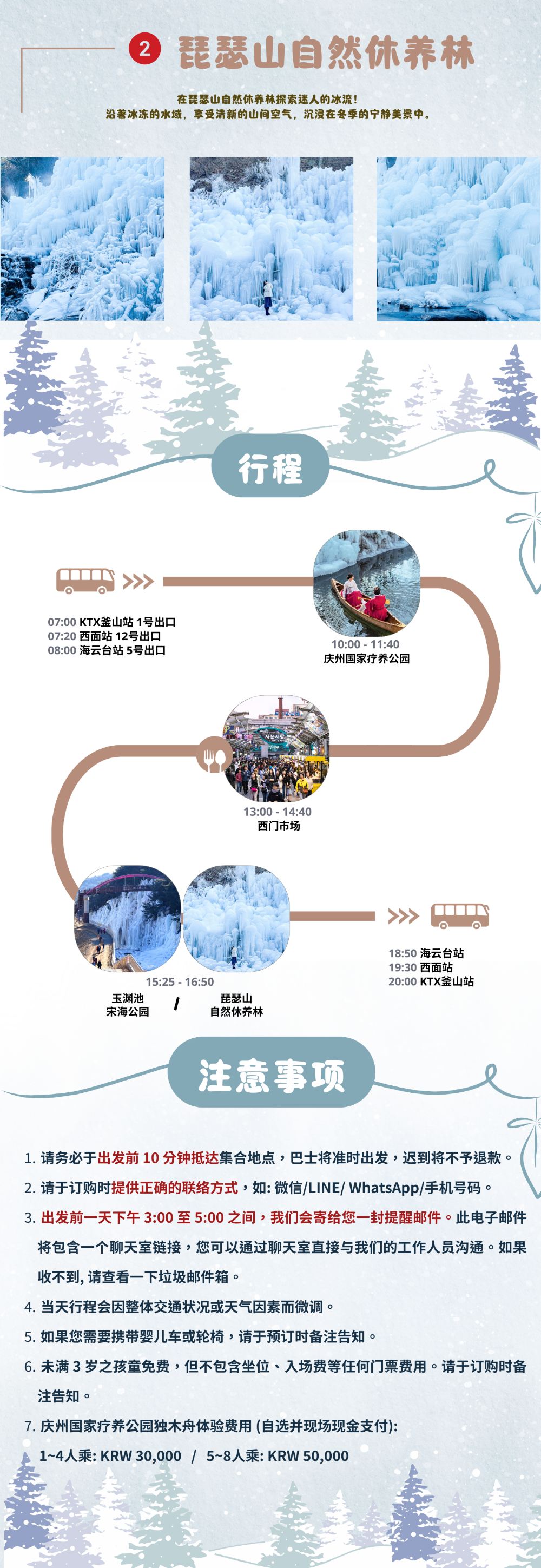 慶州國民療愈公園+大邱冰凍仙境宋海公園冰壁 (或) 琵瑟山自然休養林+西門市場日遊 (釜山出發, 冬季限定)