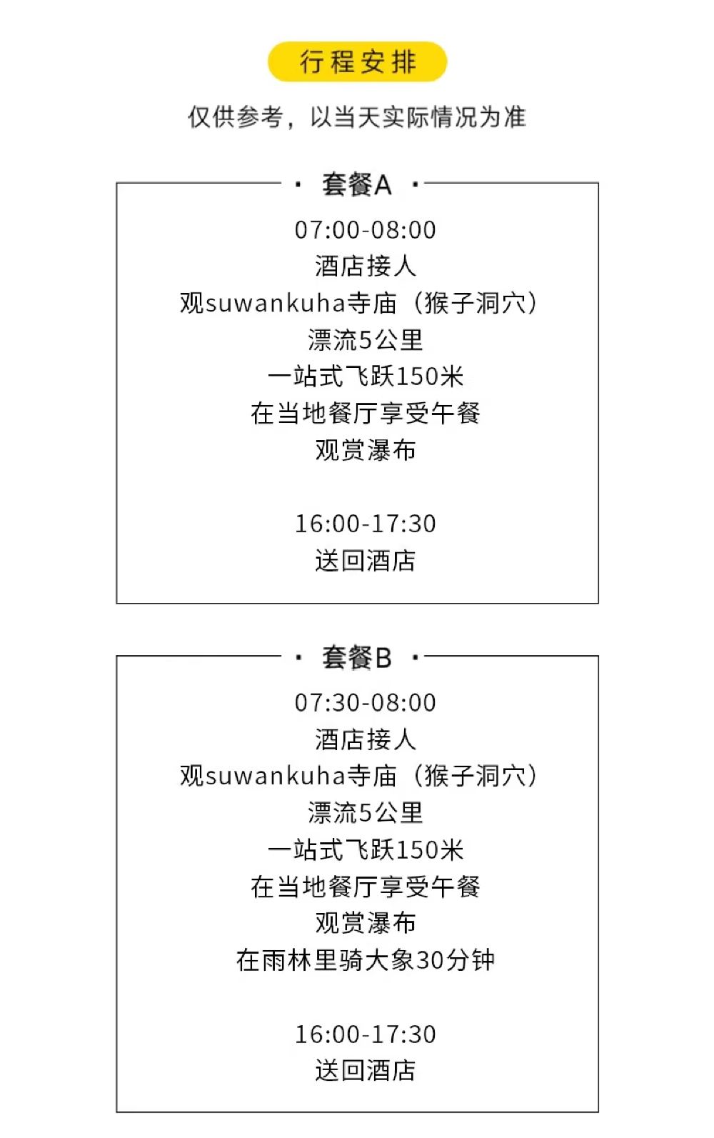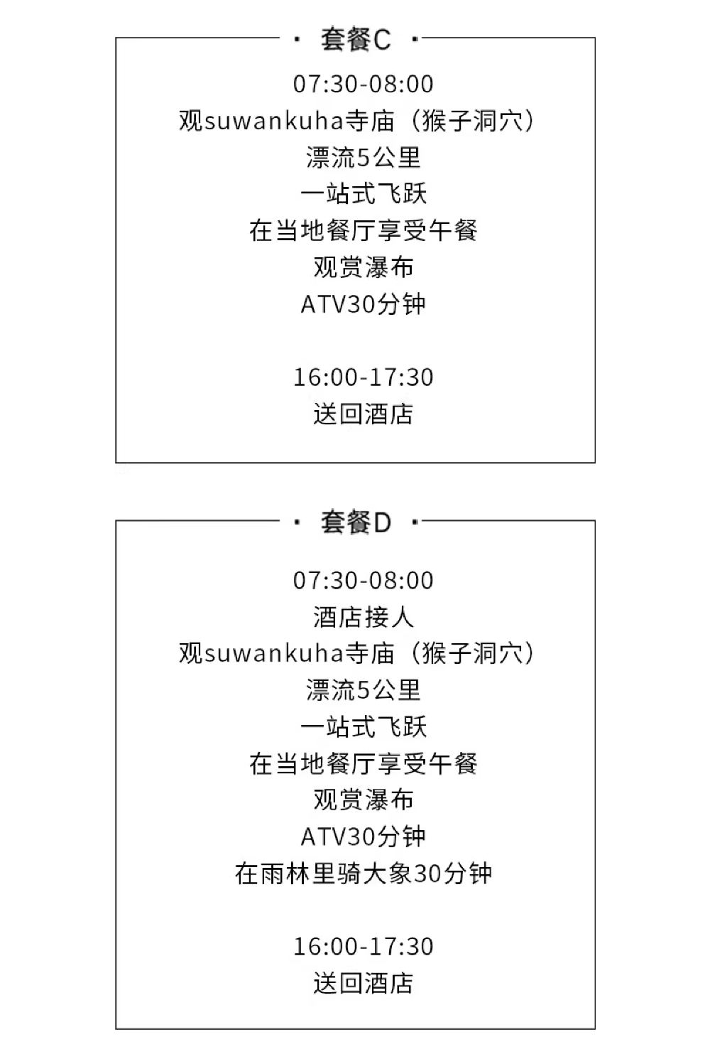 組合豐富刺激多元化 漂流可搭配騎大象、ATV、叢林飛躍,滿足各類人群的出行需求!
