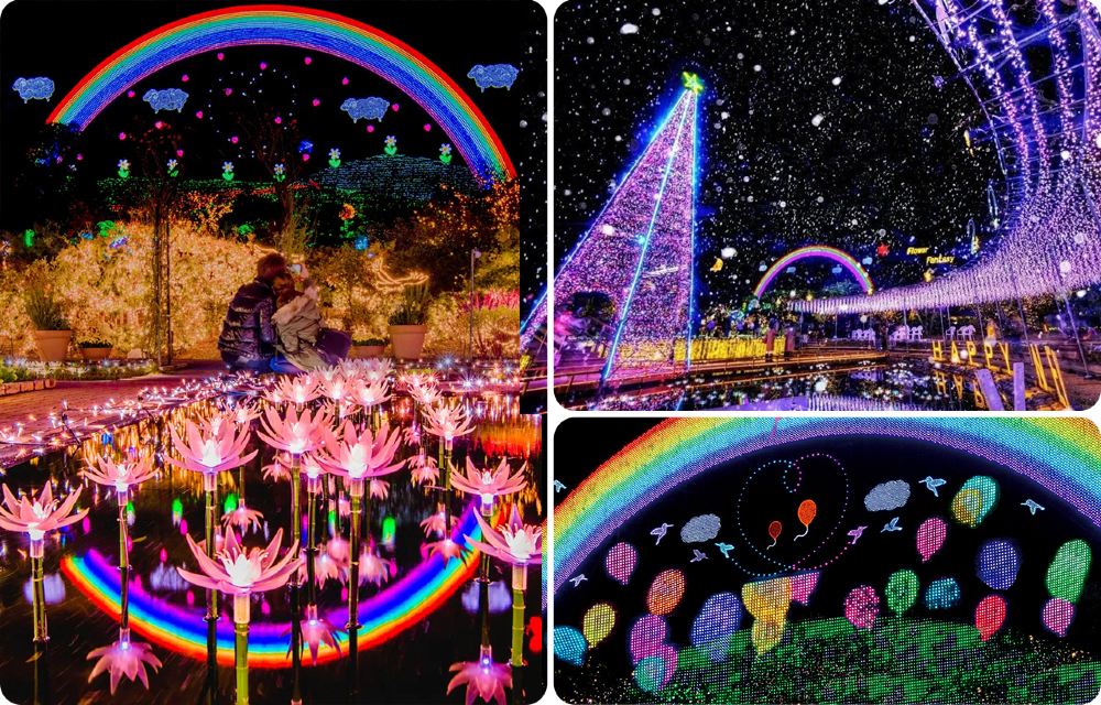 ▲ 日本的四季(心之故鄉)---園內五百萬顆燈光裝點整個花園,重現四季花卉的光影奇景。藤花、玫瑰、水鏡與光之隧道交錯鋪展,照亮冬夜,也溫暖著人們心中那片「歸屬感」的故鄉。