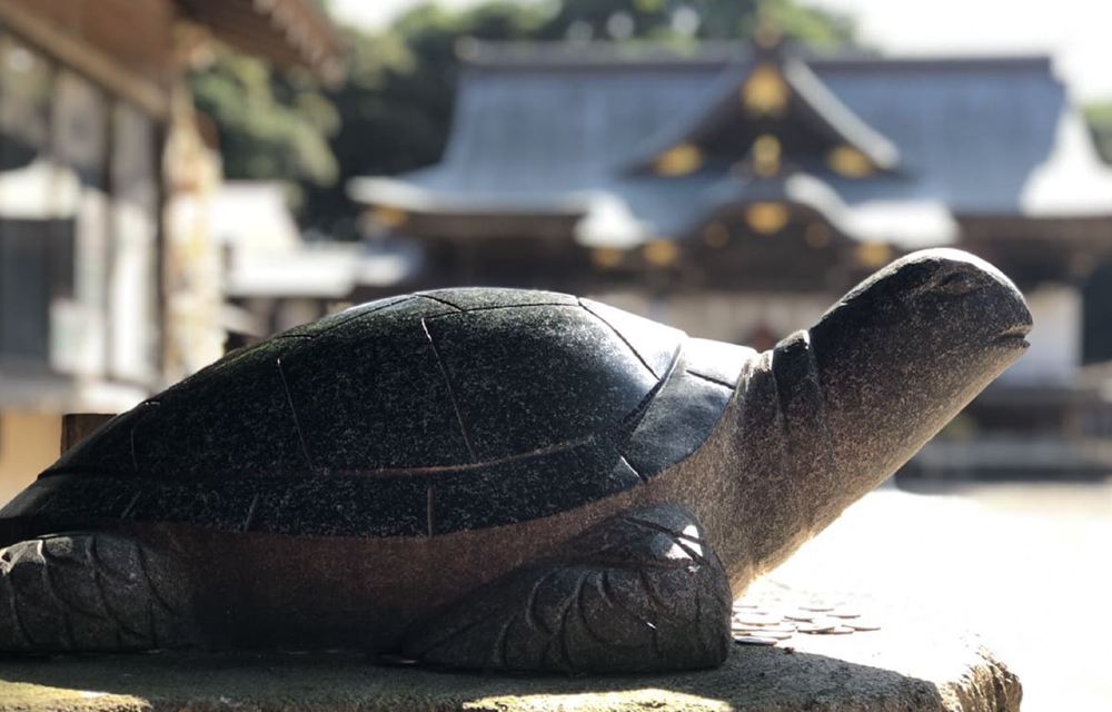 ▲ 神社境內供奉著一尊「幸運之龜」石像。 這隻石龜象徵著長壽、財富與好運,因而吸引了眾多前來祈願提升財運與健康運的參拜者,據傳只要輕觸龜背,便可獲得好運加持,許多人專程來此祈求中彩、事業順利或身體康健。