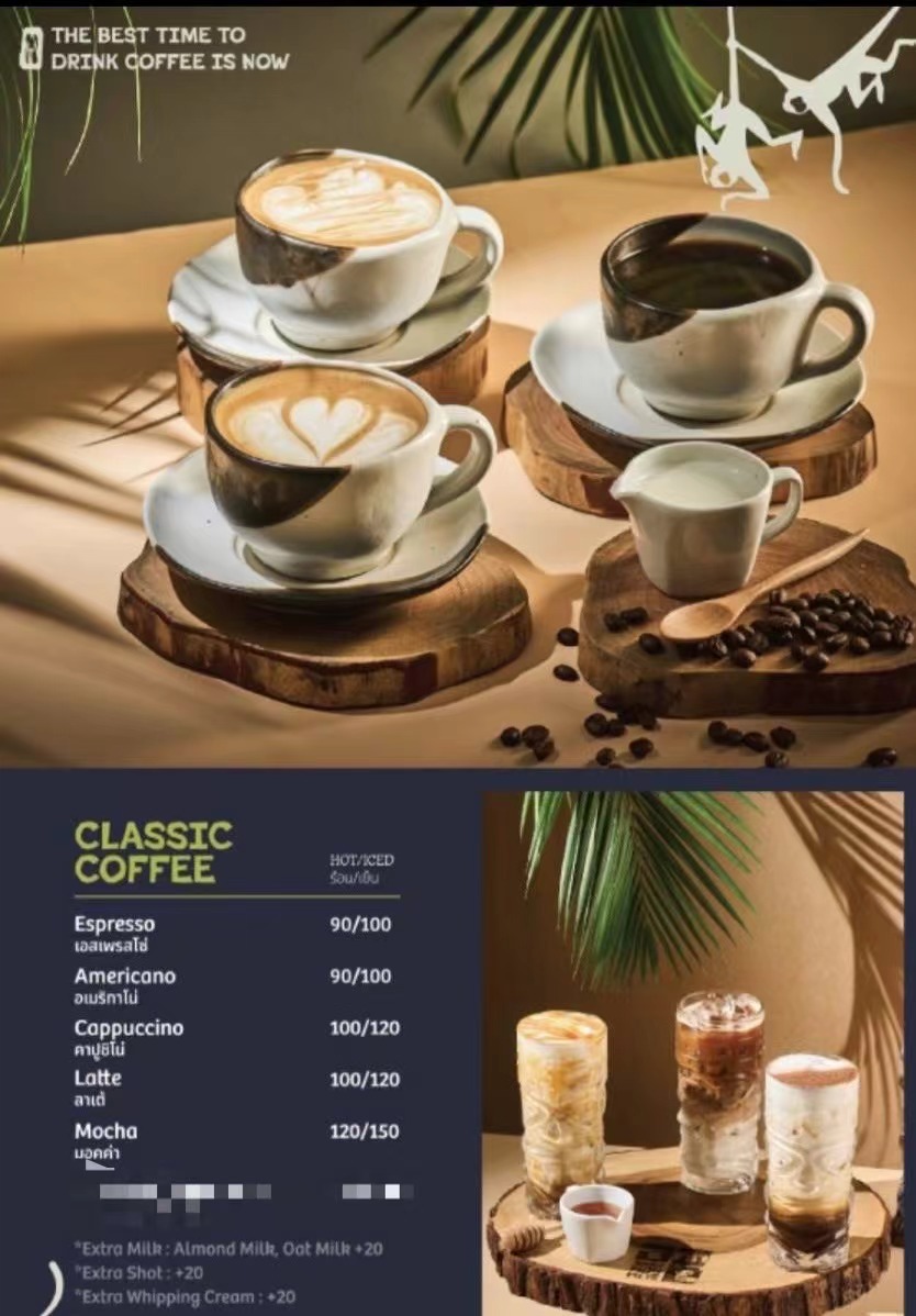 可選飲料為經典咖啡或巧克力菜單參考圖片: