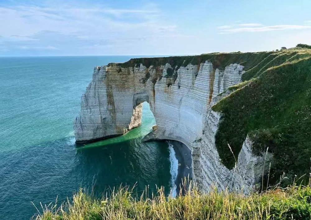 ▲ 象鼻山,位於埃特勒塔小鎮,是大自然的鬼斧神工之作。三座白堊質懸崖組成的象鼻形海蝕門,宛如大象屹立海邊。這裡是印象派畫家的靈感源泉,莫奈等大師在此留下諸多佳作。漫步海灘或登頂懸崖,碧海藍天白崖,美如畫卷,讓人流連忘返。