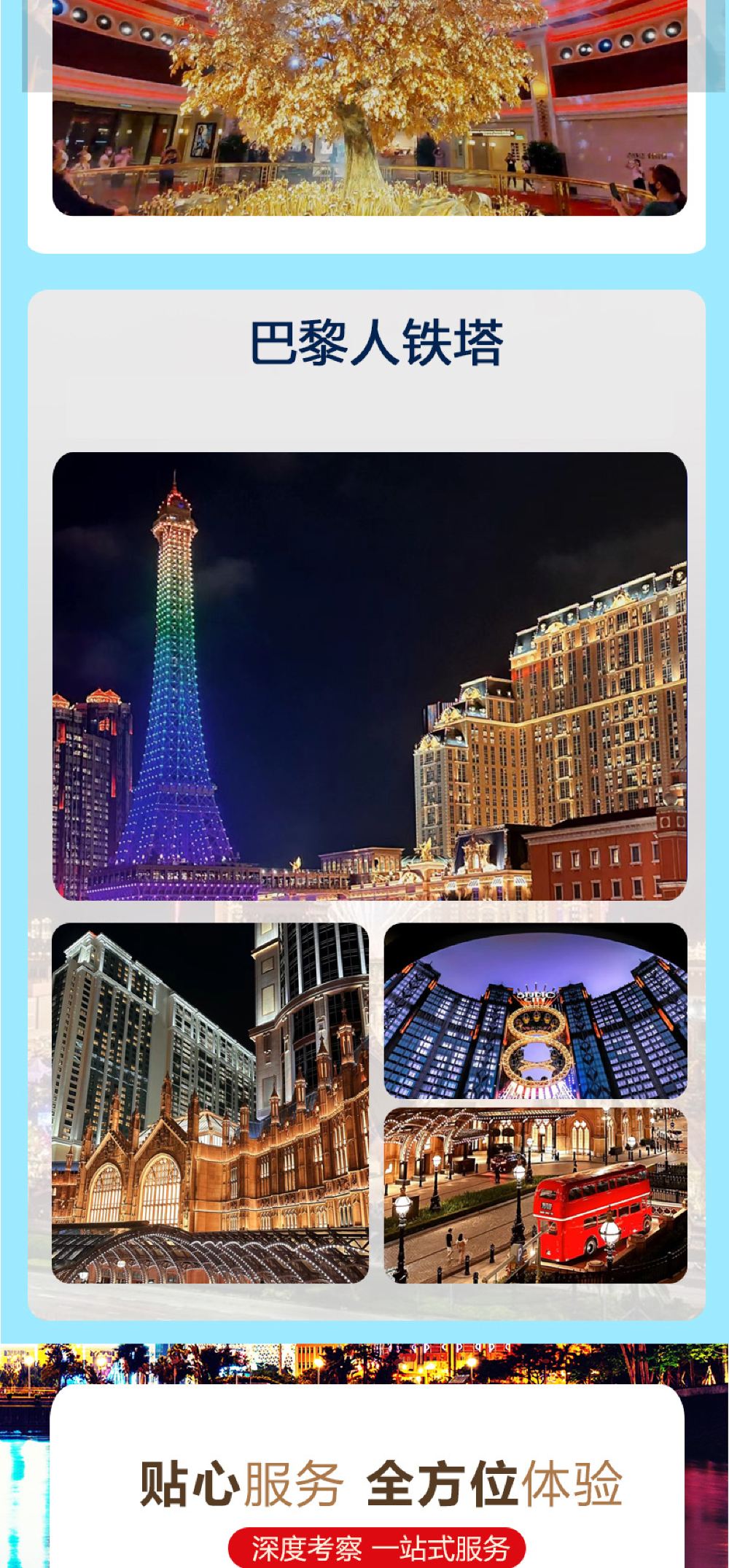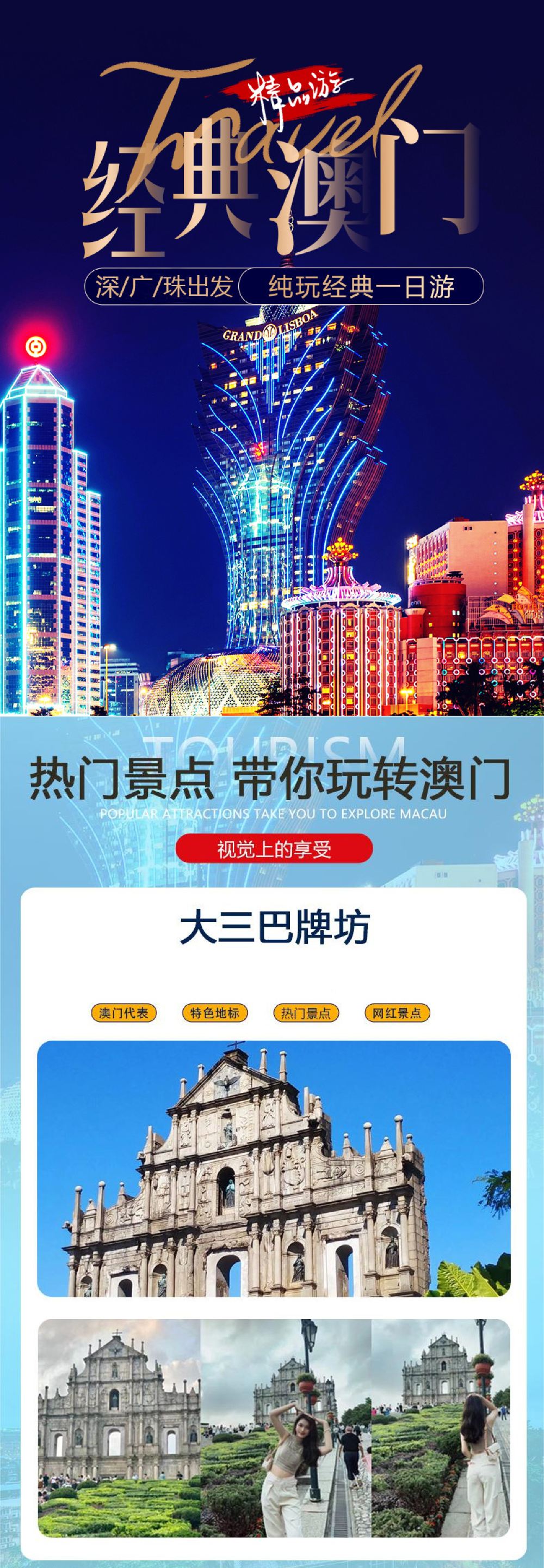 澳門漁人碼頭+大三巴+巴黎塔+澳門一日遊+多條路線+多地出發