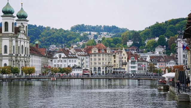盧塞恩市背靠雄偉的山脈。跟著導遊漫步於美麗的老城區,欣賞瑞士阿爾卑斯山的壯麗景色。