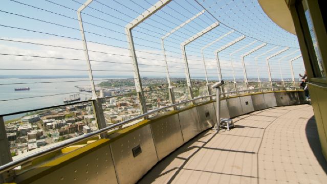 您的太空針塔之旅將從一張定時門票開始,您將體驗一段驚險刺激的42秒電梯之旅,同時飽覽西雅圖中心、普吉特海灣和周圍群山的壯麗景色。抵達塔頂後,您可以踏上「放大鏡」(The Loupe),這是世界上首個也是唯一一個旋轉玻璃地板,為您提供獨一無二的視角,俯瞰這座建築和下方的城市。繼續前往露天觀景台,您可以倚靠在傾斜的玻璃牆上,感受清新的空氣,並在24張彷彿漂浮在天際線之上的傾斜玻璃長椅上休憩放鬆。