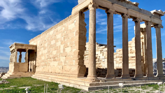 在狄俄尼索斯神殿稍作停留,神殿供奉希臘酒神和生育之神狄俄尼索斯。進入雅典衛城後,您可以近距離欣賞重要景點,例如山門、厄瑞克忒翁神殿、雅典娜勝利女神廟和帕德嫩神殿。您可以駐足拍照,欣賞這些迷人的遺跡,並向導遊了解它們的歷史。