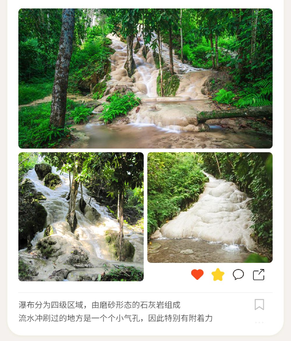輕鬆攀爬體驗·由磨砂石灰岩構成,水流沖刷後表面附著力強,遊客可輕鬆攀爬