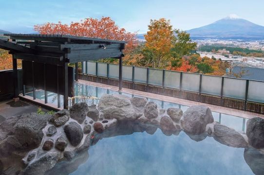 ▲ ▼可欣賞富士山景的溫泉泡湯體驗(約70分鐘,可自由活動,泡湯費用敬請自理) 溫泉需從停車場自行搭乘電梯抵達,車輛無法開上去哦~ 若選擇溫泉浴,我們提供接駁服務,將您送至2019年底新開業的「木花湯」溫泉浴場。溫泉名稱源自供奉於富士山及富士淺間大社的女神「木花咲耶姫」。這裡擁有絕佳的富士山全景視野,以及自家源泉的優質溫泉,可享受一邊眺望富士山一邊泡露天溫泉的樂趣。入浴費用參考:平日1700日圓、週末及節假日2100日圓。