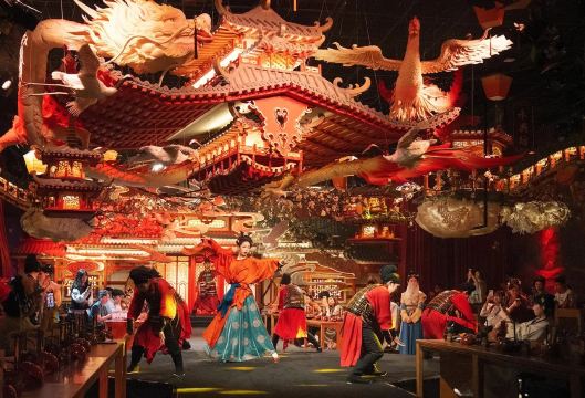 - 敘宴經常推出不同的主題餐秀,如哪吒主題、大唐長安賦主題等。以哪吒主題為例,顧客可以選擇九大角色妝造,像敖丙發光的龍角、申公豹逼真的眼妝等,都細節滿滿。30 多位專業演員 24 小時待機互動,配合全息投影和多舞台立體表演,將《九重賜寶宴》等名場面復刻,讓顧客彷彿置身於封神宇宙或大唐盛世,全身心沉浸在奇幻的故事場景中。