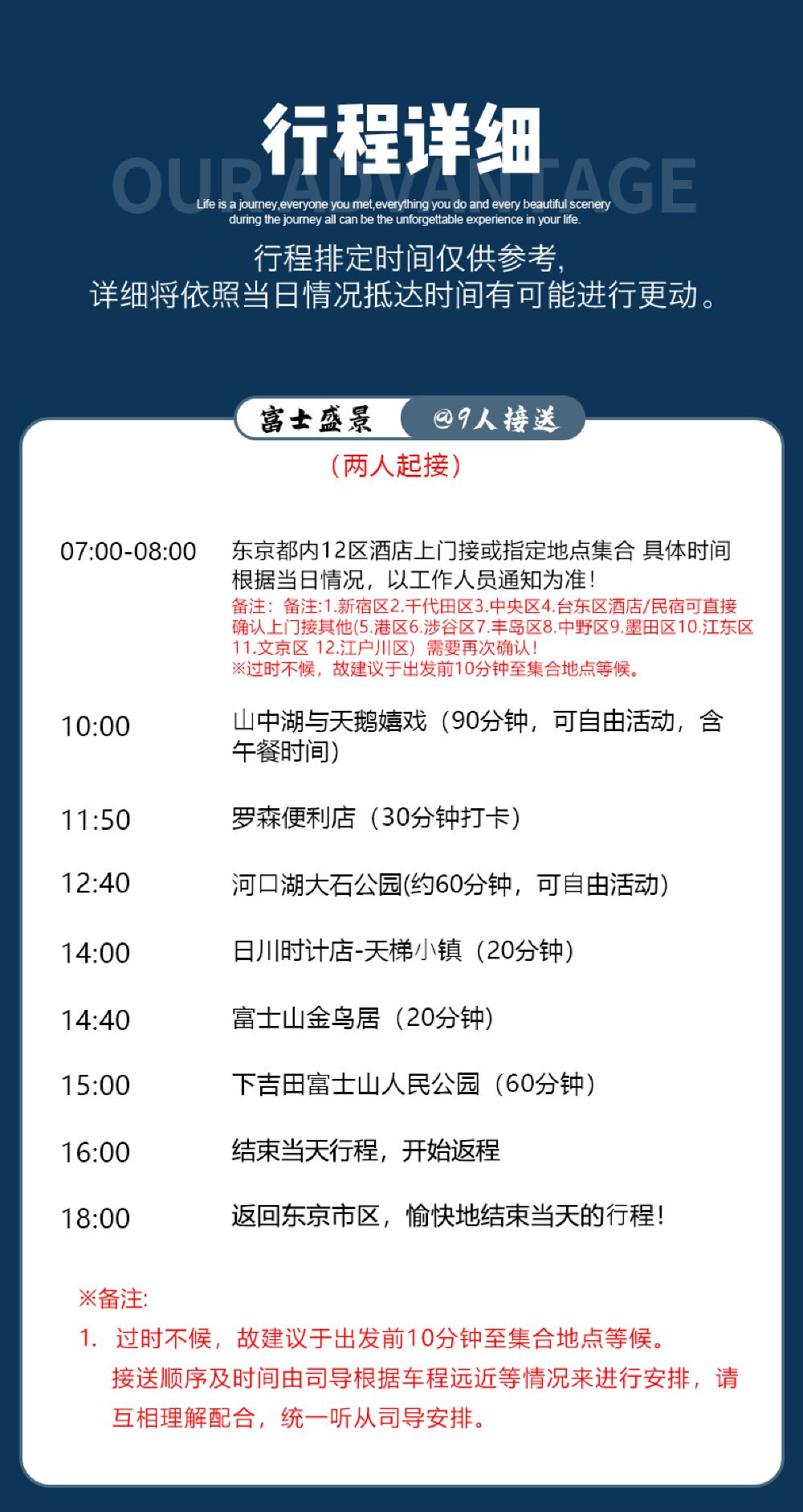 日本東京富士山盛景一日遊【9人精品團|上門接送|中文導遊