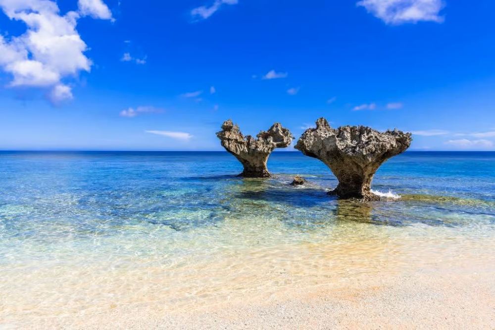 ▲ 來到被稱為「戀人之島」的古宇利島,絕不能錯過最具代表性的浪漫地標——愛心石(心型岩)。這對佇立在海邊的珊瑚岩石,經年累月被海水沖蝕,意外形成一顆立體愛心的模樣。