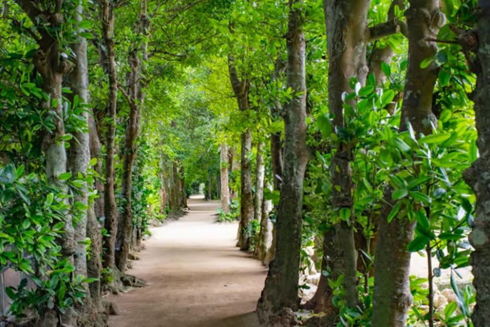 ▲ 位於沖繩北部、靠近美麗海水族館的備瀨福木林道,是一處靜謐而綠意盎然的小徑秘境。沿路高聳的福木樹排列成行,枝葉交織出天然的綠色隧道,不僅為村落帶來蔭涼,也象徵著對土地與家園的守護。