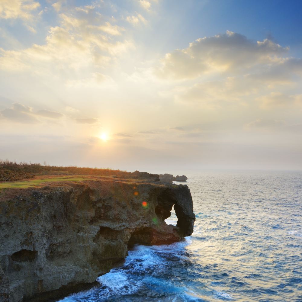 ▲ 萬座毛是沖繩代表性的自然景觀之一,以壯觀的石灰岩斷崖與象鼻岩聞名。站在高台上,可俯瞰碧藍海洋與一望無際的水平線,天氣晴朗時更能見到夕陽落入海面的絕美畫面。