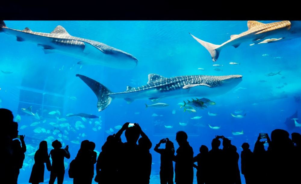 ▲ 來沖繩不能錯過的就是「美麗海水族館」,這裡擁有全球最大的觀景水槽之一「黑潮之海」,超巨大鯨鯊與魟魚就在你眼前悠游,震撼程度百分百!