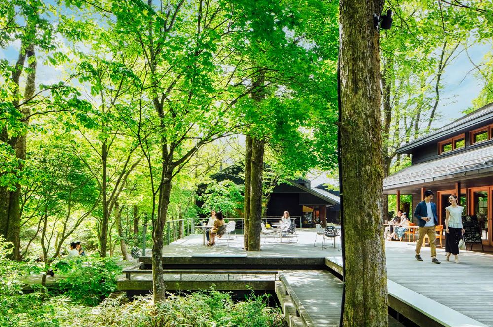 ▲ 輕井澤榆樹街小鎮Harunire Terrace(可在此午餐) 位於長野縣的榆樹街小鎮坐落在100多株野生春榆樹的自然環境中,是一個將9棟建築物用寬闊的木製甲板連接而成的購物區。這個商業設施以感受「輕井澤的日常生活」為主題,集合了16間各具特色的店鋪,包括商店、餐廳和咖啡廳等。還進駐有舊輕井澤地區的人氣蕎麥麵店和麵包店的分店,以及北歐優質雜貨店和家居等精品商店。