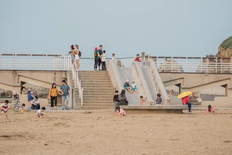 |親親水池|孩子們親近海洋生態的設施,水中有小魚一起悠游,親子能夠在此安心的觀察海洋生物。 |天使向海步道|在步道上往前看,彷彿像一條通往藍海的通道,是拍照打卡的景點,還有一座孩子們愛的溜滑梯可以直通留夏沙灘。